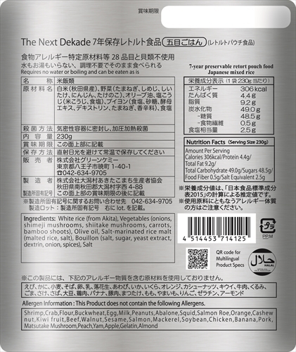 | ผลิตโดย | Ogata Village Akitakomachi Producers Association Co., Ltd. นิชิ หมู่บ้านโอกาตะ อำเภอมินามิอาคิตะ จังหวัดอาคิตะ 84, 85, 86 (โรงงานได้รับการรับรอง ISO22000 ซึ่งเป็นมาตรฐานสากลสำหรับระบบการจัดการความปลอดภัยของอาหาร) |