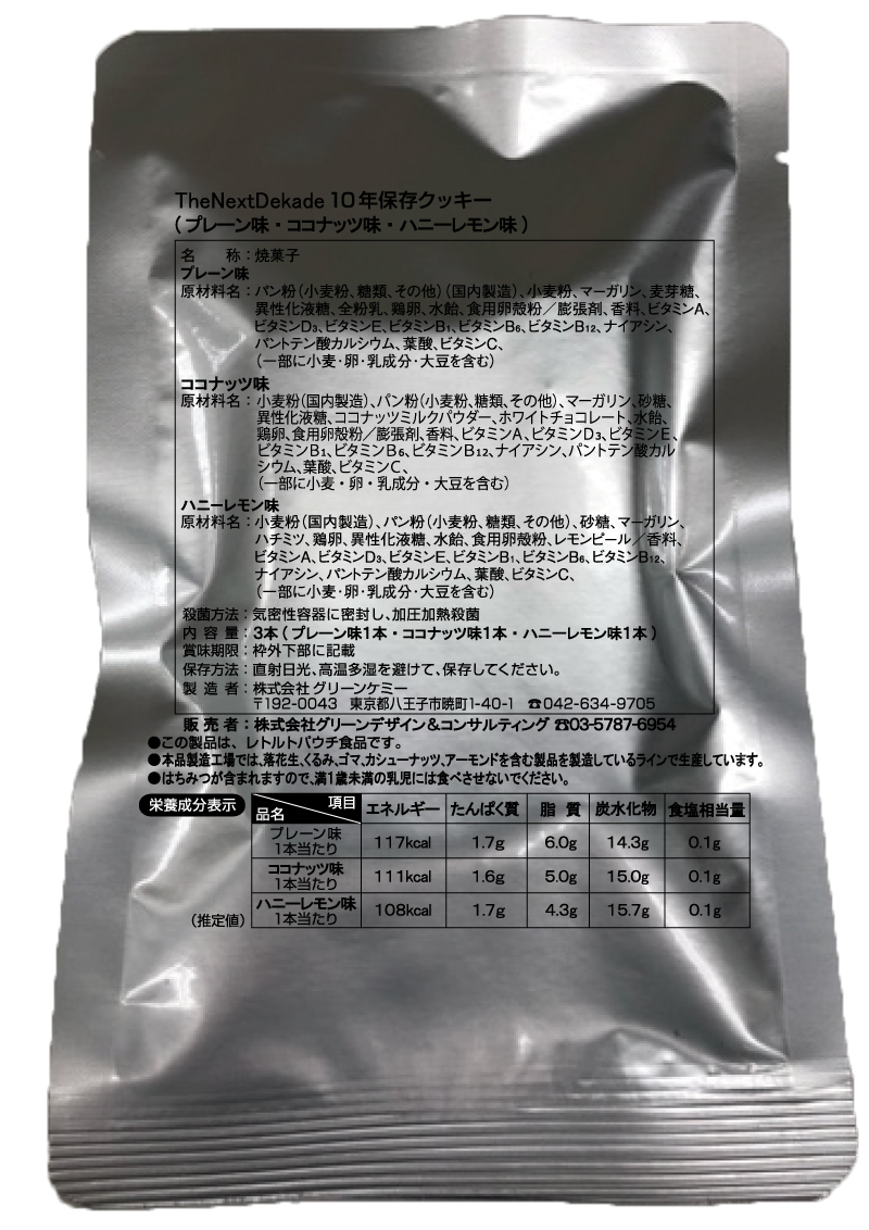 | Ingrédients | Nature : hapelure (farine de blé, sucre, etc.) (production nationale), farine de blé, margarine, maltose, sucre isomérisé, lait entier en poudre, œuf de poule, sirop d'amidon, poudre de coquille d'oeuf comestible / agent gonflant, parfum, vitamine A, vitamine D3, vitamine E, vitamine B1, vitamine B6, vitamine B12, niacine, pantothénate de calcium, acide folique, vitamine C, (Une partie de celui-ci contien du blé, des œufs, des composants du lait et du soja) |